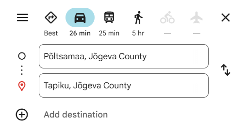 • Sõidul kasutatakse võimalikult palju suuremaid maanteid (talvel võivad teeolud väiksematel teedel olla kehvad).